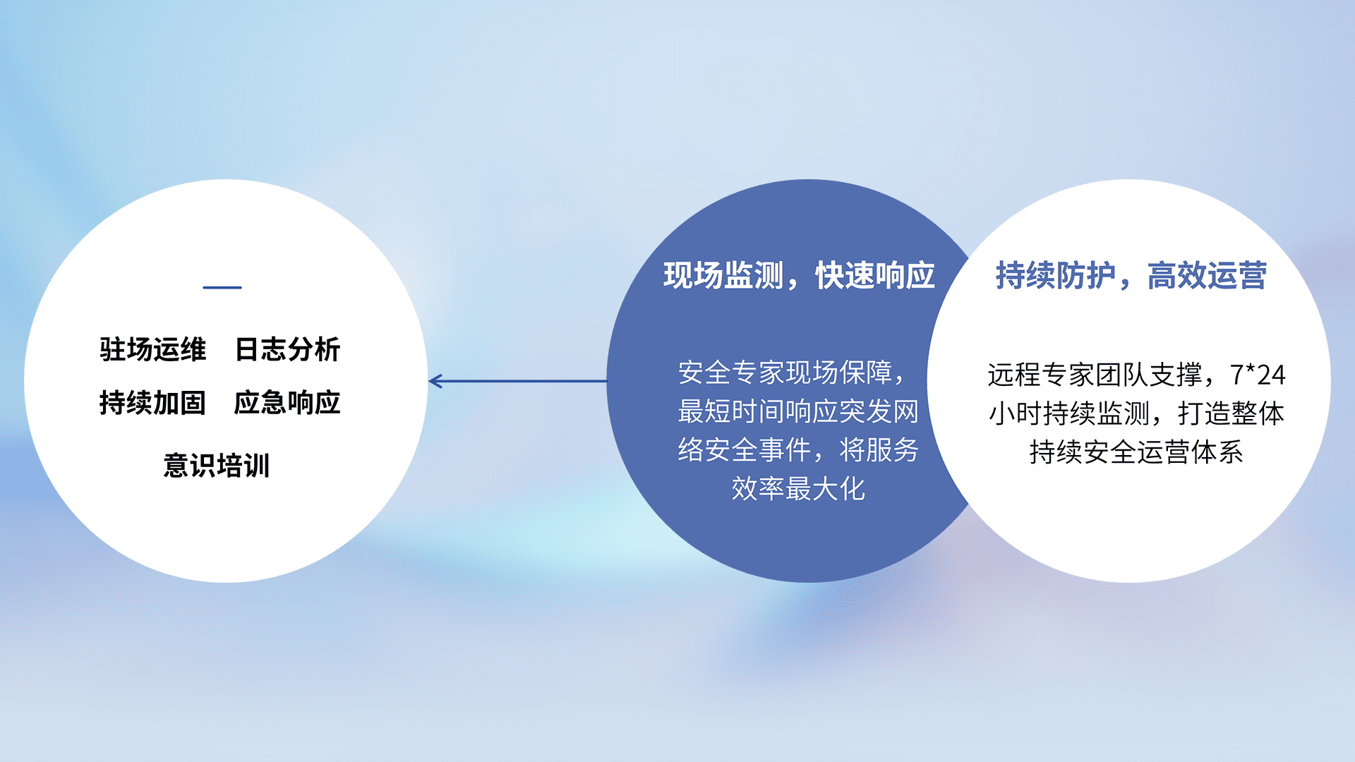 针对客户行业特性,,,提供专属的一站式安全管理服务,,,帮助客户全面感知网络空间威胁,,,,通过安全专家的线上、、、线下防护支持,,,实现风险闭环,,将安全保障常态化,,,,为客户打造常态化安全运维运营服务。。。